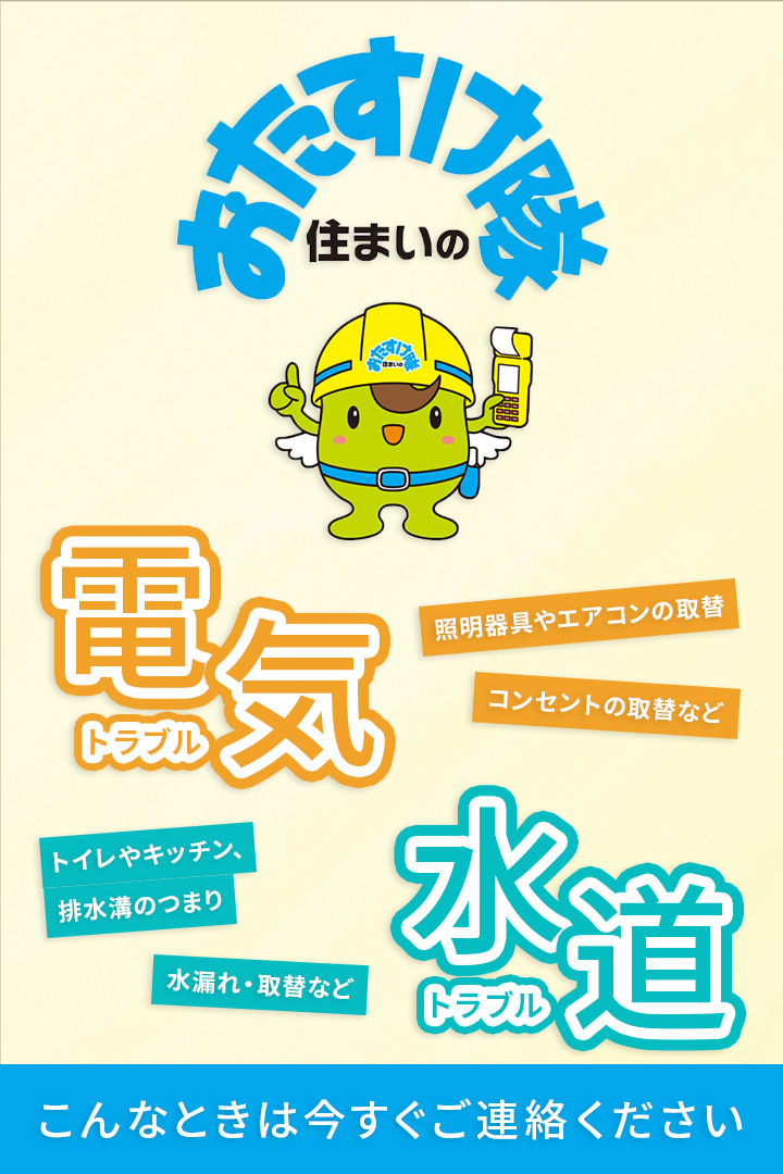 あかり電気は住まいのおたすけ隊 あかり電気は住まいのおたすけ隊です。お住まいの電気や水道のお悩みがありましたら、お気軽に問合せ下さい。オール電化やエアコン工事等、住まいに関する幅広い工事に対応可能です。そのほか事務所の電気・空調・給排水設備工事や公共工事、機器の販売も行っています。お客様のニーズに合わせた工事で、皆様の快適な暮らしや空間づくりをお手伝いします。ダイキン工業(株)・長府製作所の機器取扱い店の直営店です! あかり電気は、お住まいの電気・水道に関する工事を中心に、エアコン工事やスイッチ・コンセント工事、TVアンテナ等生活を快適にする工事を行っています。 事業案内へ 快適・安全・省エネなオール電化は、経済性だけでなく高齢化問題や環境への配慮の点からも注目されています。オール電化についての詳しい内容をご紹介いたします。 オール電化についてへ あかり電気が自信を持っておすすめする、お買い得商品をご紹介しています。よりよい製品をお手ごろな価格で手に入れるチャンスです。ぜひご検討ください。ダイキン工業(株)の直営店ですが、他社の機器も取扱っております! お買い得商品へ エアコン工事、照明やスイッチに関する工事、TVアンテナ設置や水道工事など、身の回りの小さな工事を行っています。お気軽にご相談ください。 各種工事の受付へ 会社案内 会社案内へ 採用情報 採用情報へ contactお問い合わせ 商品や工事に関するご質問、お見積りのご依頼など、何でもお気軽にお問い合わせください。 代表 0120-558-037 メールでお問い合わせ